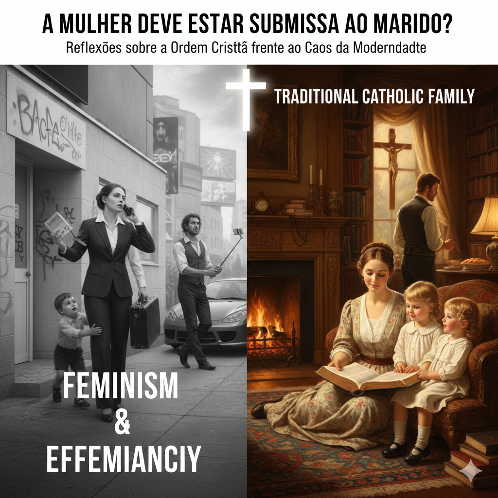 O feminismo prometeu felicidade, mas entregou divórcios, depressão e lares vazios. O catolicismo tradicional, através das palavras de São Paulo, oferece o remédio: o retorno à ordem natural. A submissão da mulher ao marido, vivida na caridade cristã, não a diminui; pelo contrário, a eleva ao posto de guardiã da civilização cristã dentro da igreja doméstica.